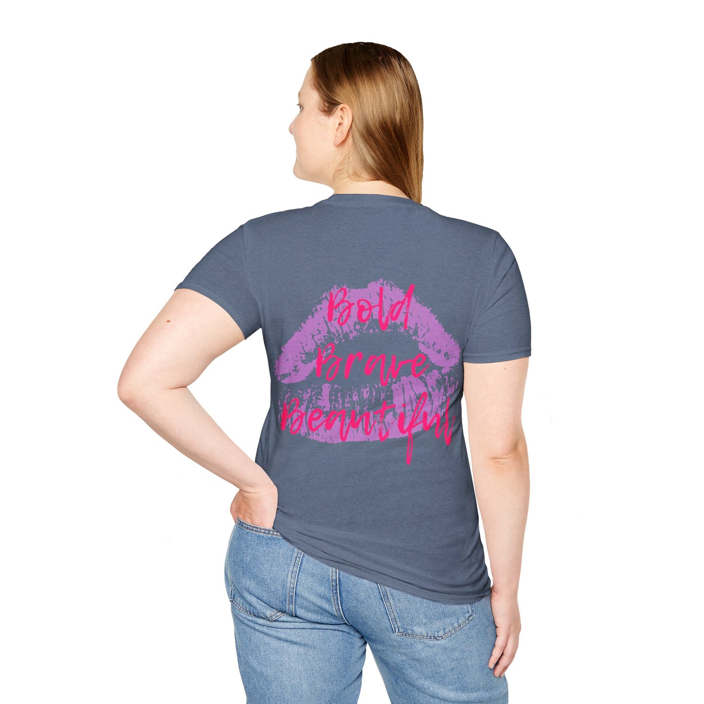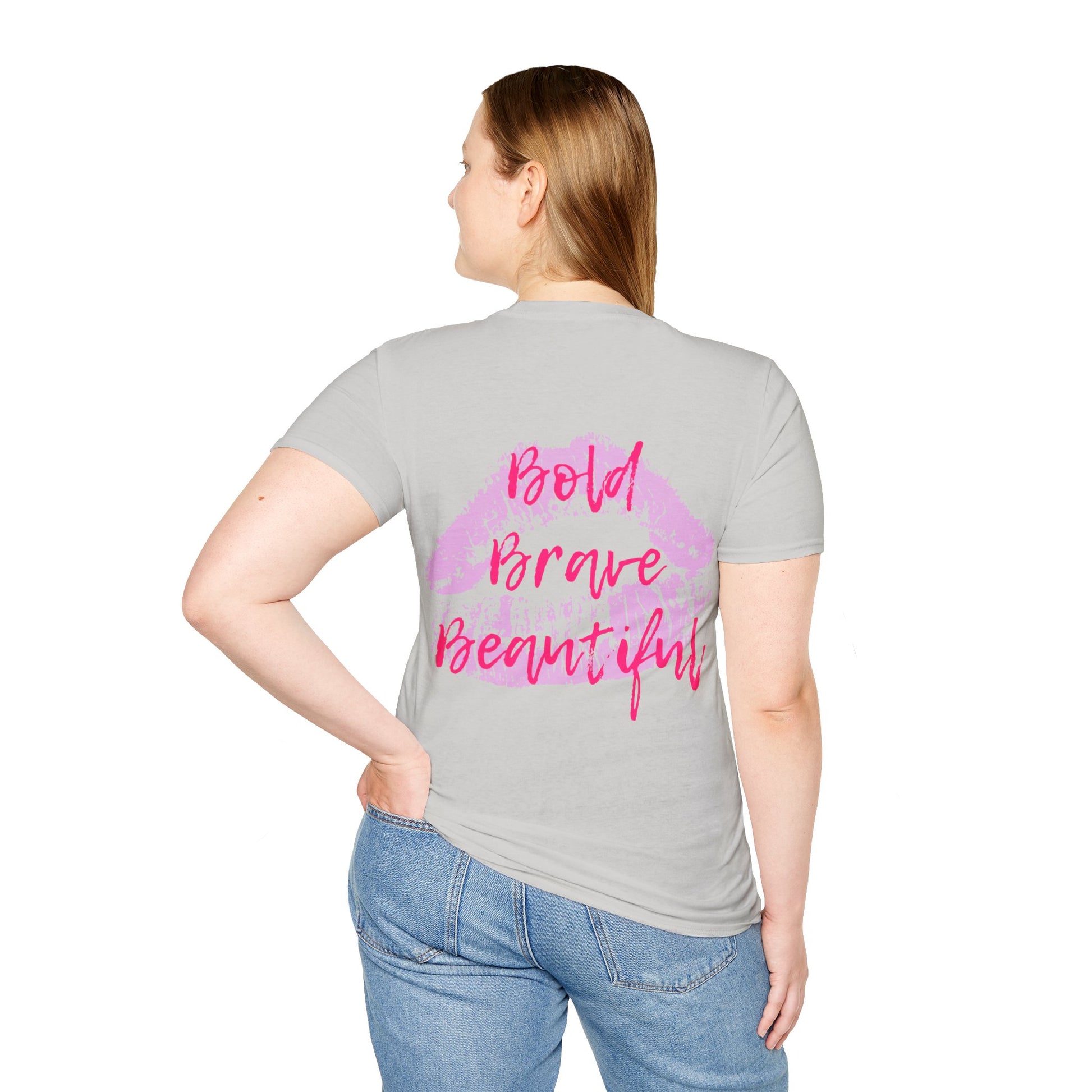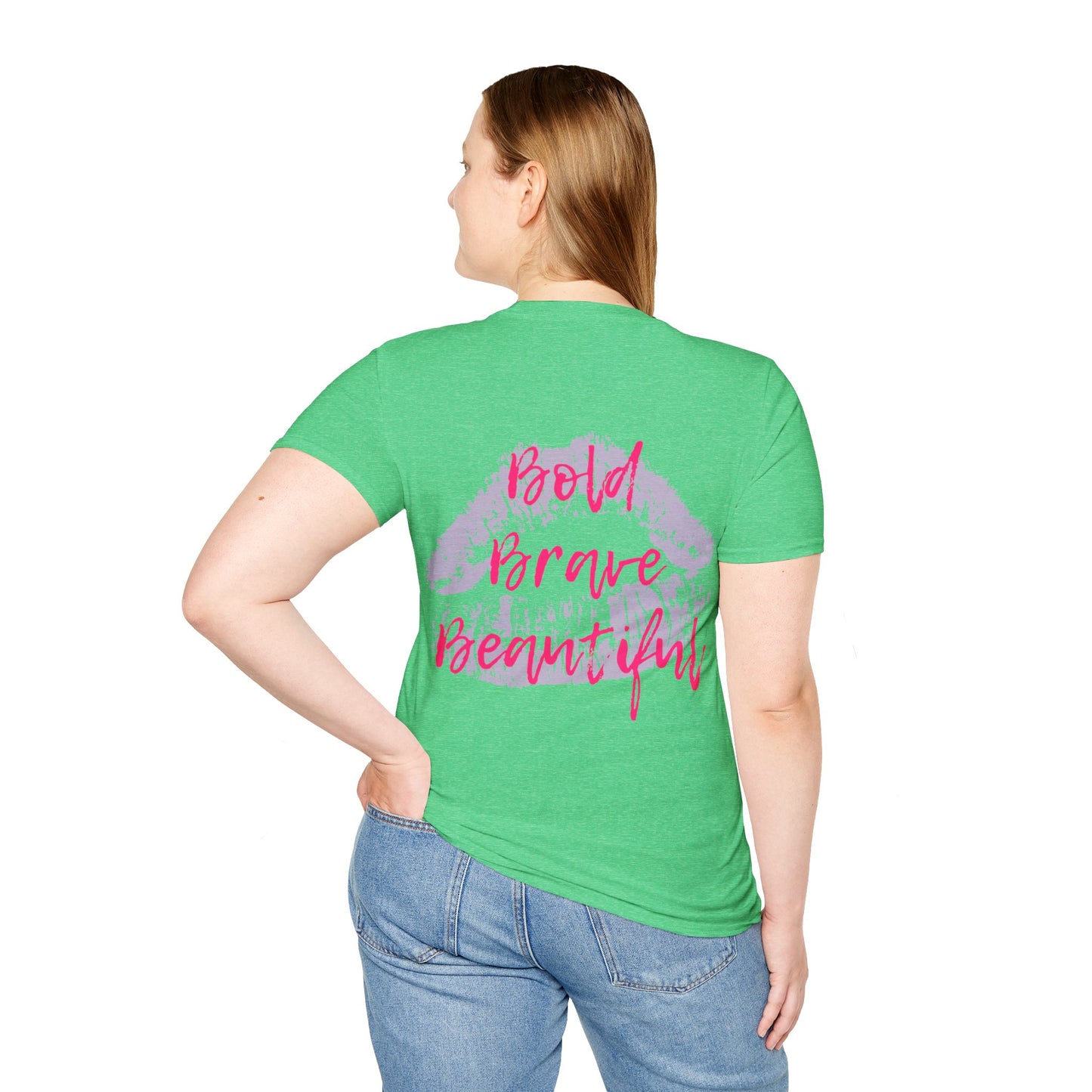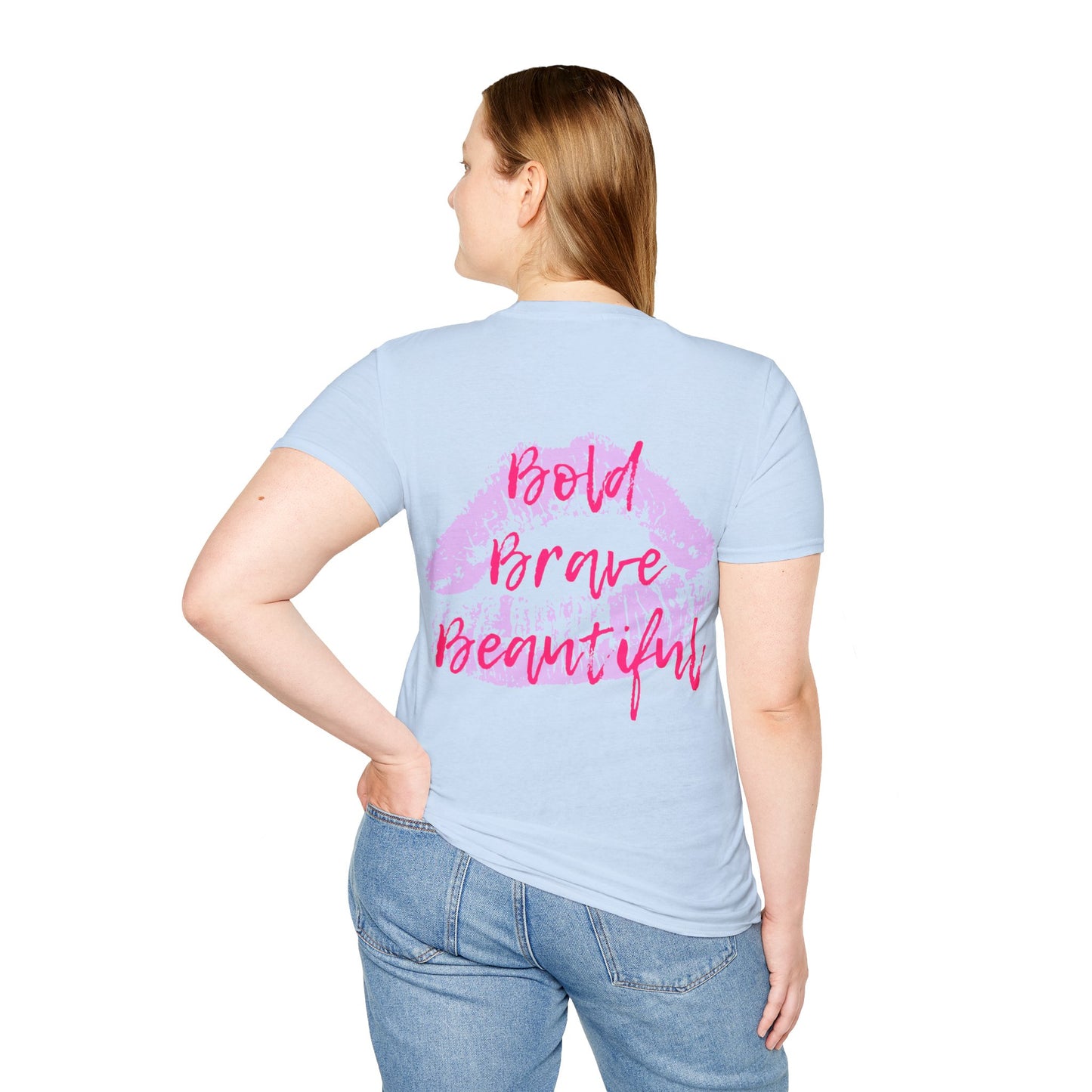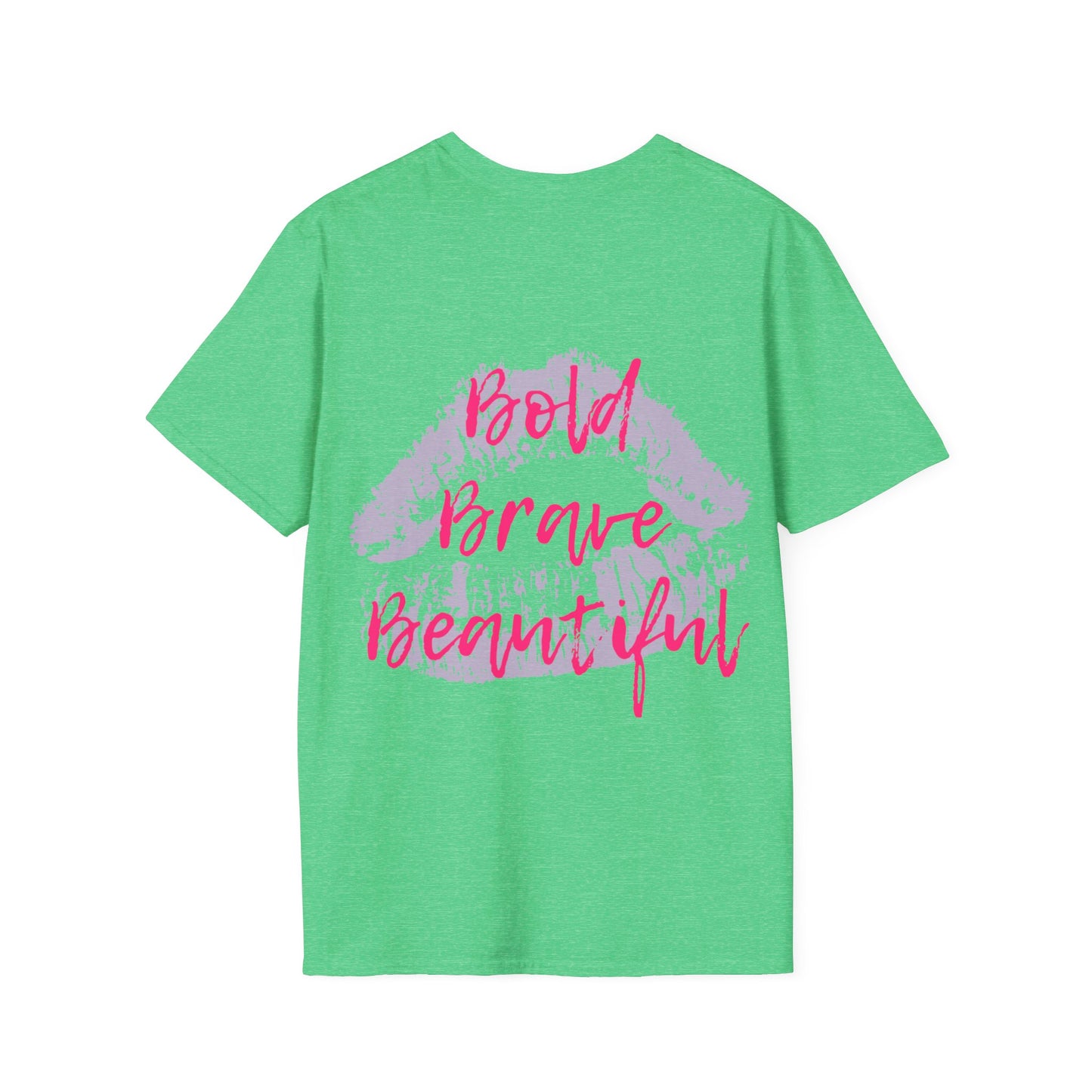 Fierce Fearless Female (Front) Bold Brave Beautiful (Back) Unisex Softstyle T-Shirt S-M-L-XL-2XL-3XL
